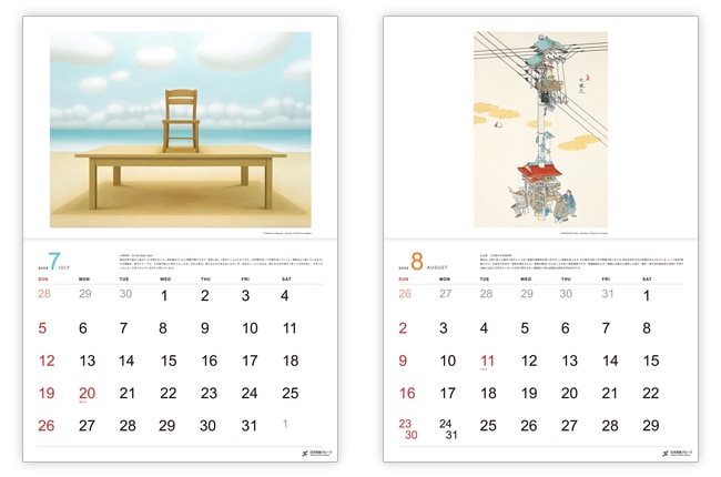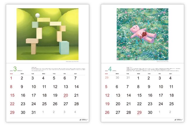 毎日が輝く! 人気アーティスト、山口晃、江口綾音、小林孝亘の個性が光る、 日本製紙グループによる2026年版カレンダー。 それぞれの技と感性とともに走り続けるアートランナーたちを紹介し、彼らの活躍を応援していく日本製紙グループによるカレンダー2026年版。 山口晃、江口綾音、小林孝亘、3人の人気アーティストのクリエイティブな個性が光る作品を4点ずつランダムに、12点掲載したA3判の大型カレンダー。毎月変わる作品世界で毎月が新鮮…1年をワクワクしながら過ごしましょう! 【掲載作家】 山口晃(1、5、8、12月)、江口綾音(2、4、6、10月)、小林孝亘(3、7、9、11月) 特設ページ ≫ 14枚組み(作品12点)OPP袋包装、中折れ式カレンダー A3判(420×297×厚さ5mm) オフィシャルホームページ 日本製紙グループ OFFICIAL WEB ≫