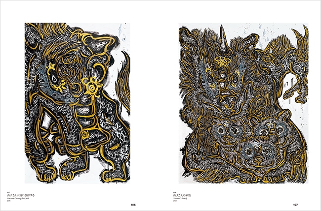畏敬の念をもち共存してきた聖なる存在としての 動物たちを描く神聖な霊性世界。 巡回展「小松美羽 祈り 宿る」公式図録兼書籍! 狛犬や龍などの神獣、神聖な霊性を描くアーティスト小松美羽。 本書は小松の作品集第3弾。同名の展覧会が札幌芸術の森美術館(2025年7月5日〜8月31日)、北海道立函館美術館(2025年9月20日〜11月30日)で巡回され、本書はその図録と兼ねた書籍となる。 独自の死生観を繊細な線でとらえた銅版画からキャリアを開始した小松は、現代アートの最前線であったニューヨークでの体験を経て、やがて大型の絵画制作へと移行する。以降、小松は祈り、制作することを真摯に問い続けてきた。 作品は大英博物館をはじめ国内外の美術館で収蔵され、近年では立体作品やパブリック・アートの制作と、その活動はますます拡張している。 「神獣たちは、祈り祈られ祈る我々を見守っている。多くの国を旅しながら感じたのは、文化や言葉が異なっていたとしても共通に存在する祈りという形に、私の霊性は何度も突き動かされ続け、創造へと導かれている」。 小松は「霊性」という視点から、宇宙や精神世界を含む森羅万象に宿る力を顕現させ、調和させることを試みる。価値観が多様化し社会が一層流動性を増す現代において、小松が紡ぎ出す〈祈りのかたち〉は、より切実さをもって捉え直すことができるだろう。(本展開催概要より) 本書では、小松の代名詞である神獣を中心に、各地の民話や伝説を図像化した連作、独自の宇宙観による大型作品、そして巡回展開催地の北海道の風土から想を得た新作を含む約70点を掲載。 祈ること、描くことに命を削る圧倒的な世界観。何を描き、どんな思いで描いているのか、小松自身による言葉、そしてインスタレーション作品、ライブペインティングの模様も収録。小松美羽の今が詰まった一冊。 ●日英併記 著/小松美羽 A4判変型 並製本 172頁(図版約110点) 【展覧会情報】 「小松美羽 祈り 宿る」 会場:札幌芸術の森美術館 ≫ 会期:2025年7月5日(土)〜2025年8月31日(日) 会場:北海道立函館美術館 ≫ 会期:2025年9月20日(土)〜2025年11月30日(日) ※本書は本展の公式図録兼書籍です。 オフィシャルホームページ 小松美羽 OFFICIAL WEB ≫ ◆小松美羽(こまつみわ) 1984年、長野県生まれ。アーティスト。 長野県坂城町在住・制作。 小松美羽の作品は、自然豊かな環境で育った幼少期の経験に根ざしており、様々な動物との出会いが彼女の生と死の理解に影響を与えている。彼女の作品には、霊性や万物のつながりといったテーマが多く描かれ、すべての生き物の平等性を信じる彼女の思想が反映されている。 神聖な霊や象徴的な生物が頻繁に登場し、物質世界と精神世界の仲介者として描かれます。「大調和」という概念は、瞑想と内省を通じて築かれたもので、バランスと統一のビジョンとして彼女の作品の基盤となっている。 小松の独自のアプローチは、コレクターや美術館からも注目を集め、現代美術において存在感を示している。(小松美羽オフィシャルサイトより)